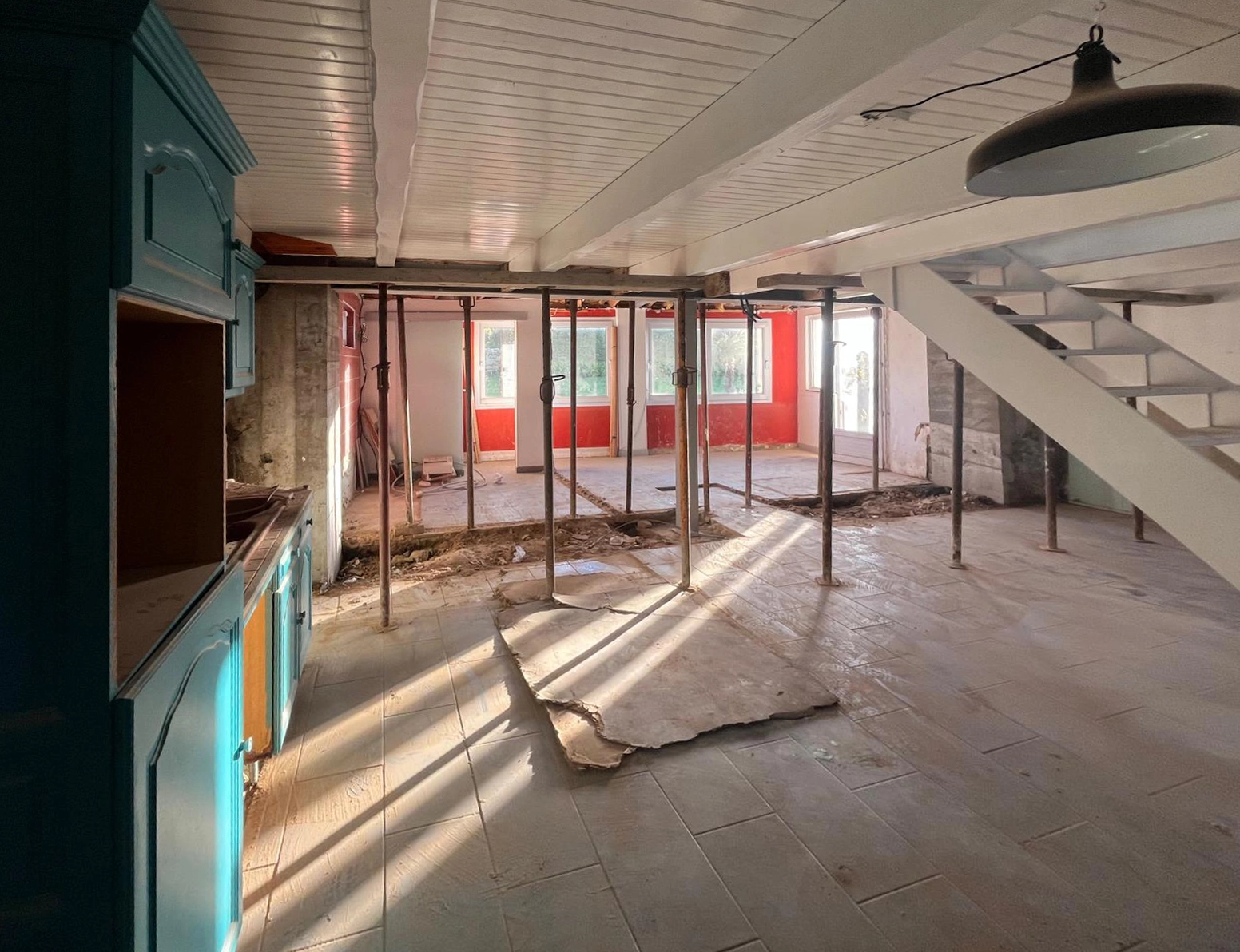 Au vu de la contrainte importante que représente le terrain sur lequel elle est implantée, l'habitation ne bénéficie pas de larges surfaces planes en contact direct avec les espaces de vie, le projet devant ainsi remédier à cette situation en y adjoignant une terrasse en partie Nord au Rdc, et un balcon en façade Ouest au R-1.